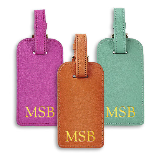 Leather Luggage Tags Personalized | Leatherology Choose from a variety of styles and colors for your personalized luggage tags. Many of our suitcase tags have privacy window that cover and protect your personal details like our Deluxe Luggage Tag. Our Mr. & Mrs. Luggage Tag makes a great wedding gift for the honeymoon when you monogram luggage tags with the happy couple's new last name.