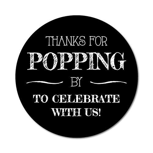 40 Thanks for popping by stickers, 2 inches - Popcorn favor labels ... This set of 40 adorable 'thanks for popping by' stickers is perfect for your popcorn favors or champagne bottles. The favor stickers are printed on brown kraft sticker paper with black print. The stickers come on sheets, are peel and stick with a permanent adhesive. Each sticker measure 2" diameter. $13.95